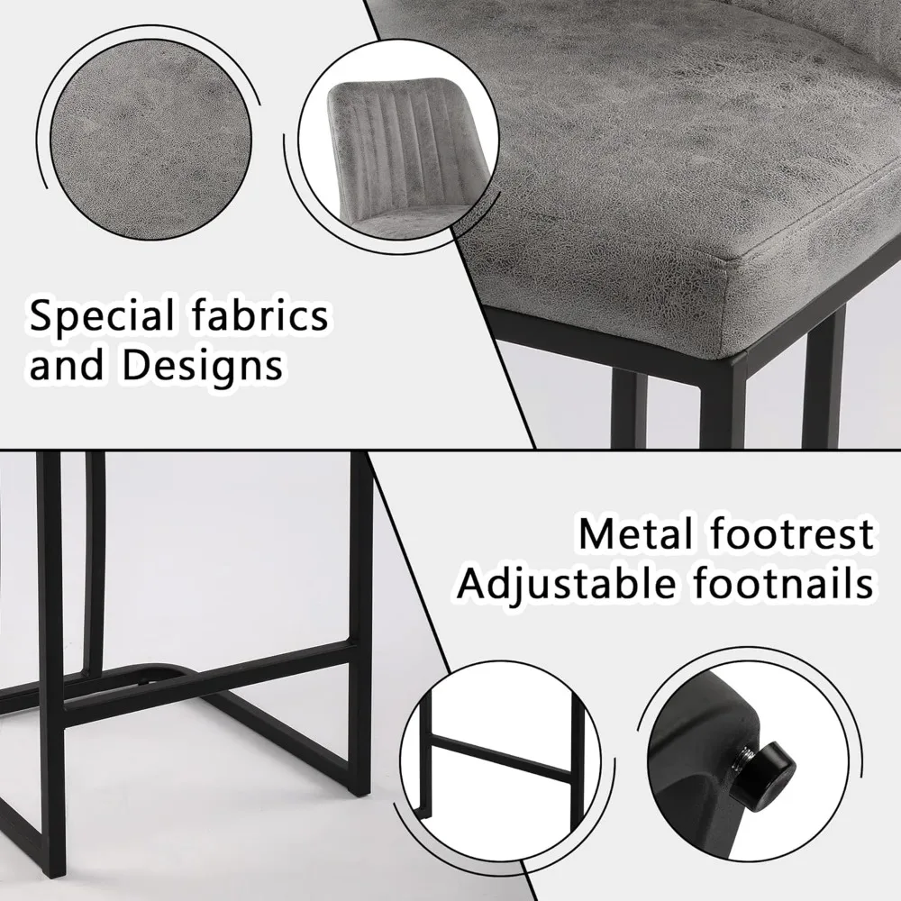 - Material: Grey bar chairs constructed of special fabric and metal legs. Upholstered bar stools special fabric easy to clean, hard to stain, Black metal legs and adjustable foot nails provide sufficient stability and firmness. Comfortable and safe for everyday use