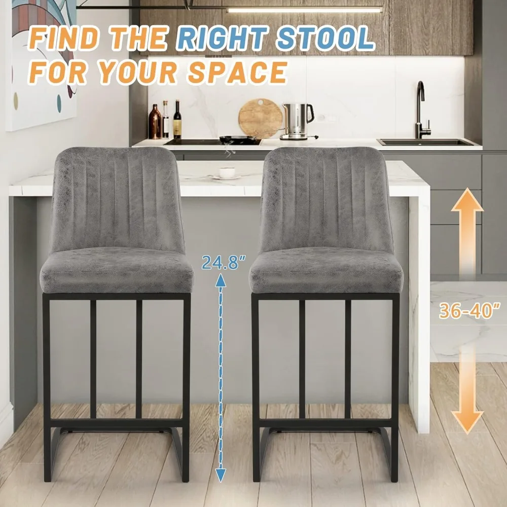 - Matters Need Attention: Please check the size before purchase. The barstool set of 4 is 24.8 inches from the highest point of the cushion to the floor, making it suitable for 36-40 inches of counters. In addition, if the grey leather bar stools wobbles slightly after assembling, adjust the foot nails to keep the barstool steady