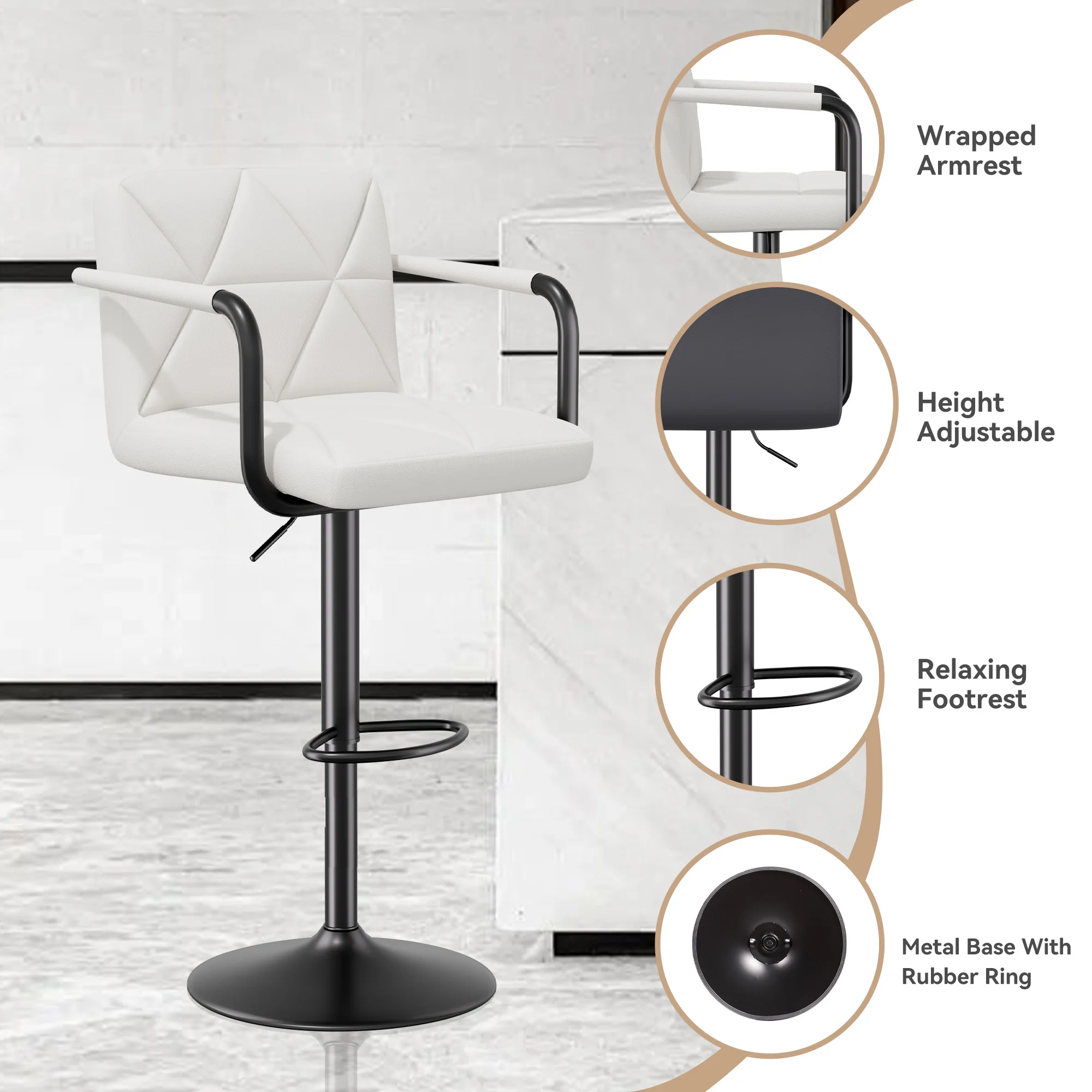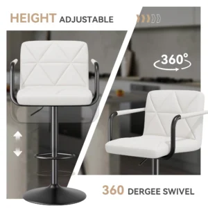 This sleek and modern bar stool combines style and functionality to enhance your dining or social experience. Equipped with an adjustable height feature, it suits various bar or counter heights, while the 360-degree swivel allows for easy interaction and flexibility.