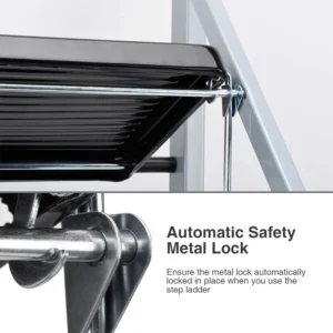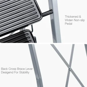 Non-Slip 3 Step Stool Folding Sturdy Steel Wide Step Ladder with Hand Grip and Locking Mechanism for Indoor Household Kitchens